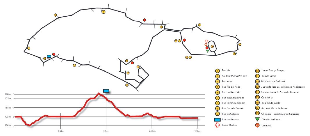 REGULAMENTO 1. Apresentação A Junta de Freguesia de Pedroso e Seixezelo, com o apoio organizativo do Clube Spiridon de Gaia e do Clube os Gaienses/Toyota, promoverão uma prova de atletismo em estrada designada Petrus Run. Esta iniciativa tem por objetivo difundir a freguesia através de uma iniciativa desportiva de periocidade anual, promovendo o desporto e as boas práticas ao nível da saúde preventiva. A 5ª Petrus Run terá lugar no dia 24 de Março 2019, pelas 10h00, com a extensão de 10.000 metros (Corrida). A 3ª Caminhada Solidária Petrus Run terá lugar no dia 24 de Março 2019, pelas 10h10, com a extensão de aproximadamente 5.000 metros, não será de carater competitivo. A direcção técnica estará a cargo de um director técnico devidamente credenciado, bem como a prova será ajuizada por um Juiz presidente da Associação de Atletismo do Porto, de acordo com regulamento da Federação Portuguesa de Atletismo. A Petrus Run é uma prova devidamente validada e credenciada junto da Federação Portuguesa de Atletismo e sua associada a Associação de Atletismo do Porto 1.1. Percurso (Corrida) Partida: Rua Rio da Costa; Av. José Maria Pedroso; Rua Rio do Pisão; Rua de Paradela; Rua Fábrica das Cavadinhas; Rua das Cavadinhas; Rua Fofim d’Aquém; Rua Cruz de Carrais; Rua do Colégio; Rua do Padrão; Largo França Borges; Rua da Igreja; Av. Padre Marçal Silva Pereira; Rua São Pedro de Pedroso; Rua Paúl de Pedroso; Rua São Pedro de Pedroso; Rua José Oliveira Rodrigues; Av. João XXI; Rua Fábrica das Cavadinhas; Rua de Paradela; Rua Rio da Costa; Av. José Maria Pedroto; Chegada: Estádio Jorge Sampaio. A prova realizar-se-á com partida simultânea de todos os participantes sendo as classificações por absolutos e escalões. 1.1. Percurso (Caminhada) Partida: Rua Rio da Costa; Av. José Maria Pedroso; Rua Rio do Pisão; Rua de Paradela; Rua Fábrica das Cavadinhas; Rua das Cavadinhas; Rua Fofim d’Aquém; Rua do Regato; Rua de Sanhoane; Rua da Cobela; Rua da Igreja; Av. João XXI; Rua Fábrica das Cavadinhas; Rua de Paradela; Rua Rio da Costa; Av. José Maria Pedroto; 2. Escalões Os participantes inscritos serão considerados nos seguintes escalões: